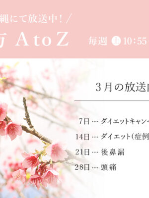 寒さがやわらぎ、春の訪れを感じる3月。 一方で、季節の変わり目は体調や体質の乱れが表に出やすい時期でもあります。 今月の放送では、春に起こりやすい不調をテー...