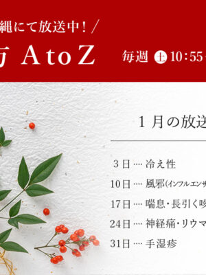漢方みず堂では毎週土曜日、FM沖縄にて『漢方 A to Z』という番組で漢方情報をお届けしております。